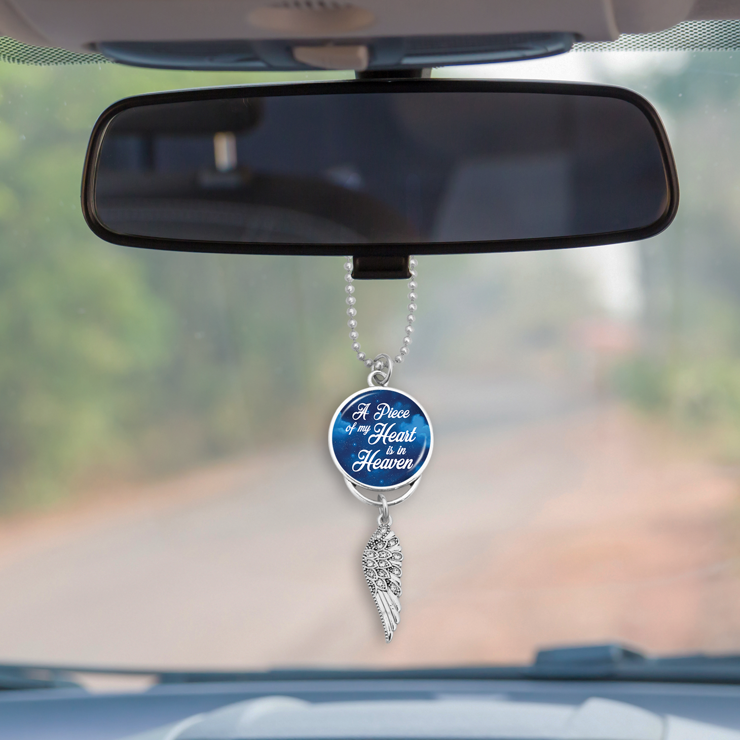 A Piece Of My Heart Is In Heaven Starry Sky Crystal Wing Rearview Mirror Charm