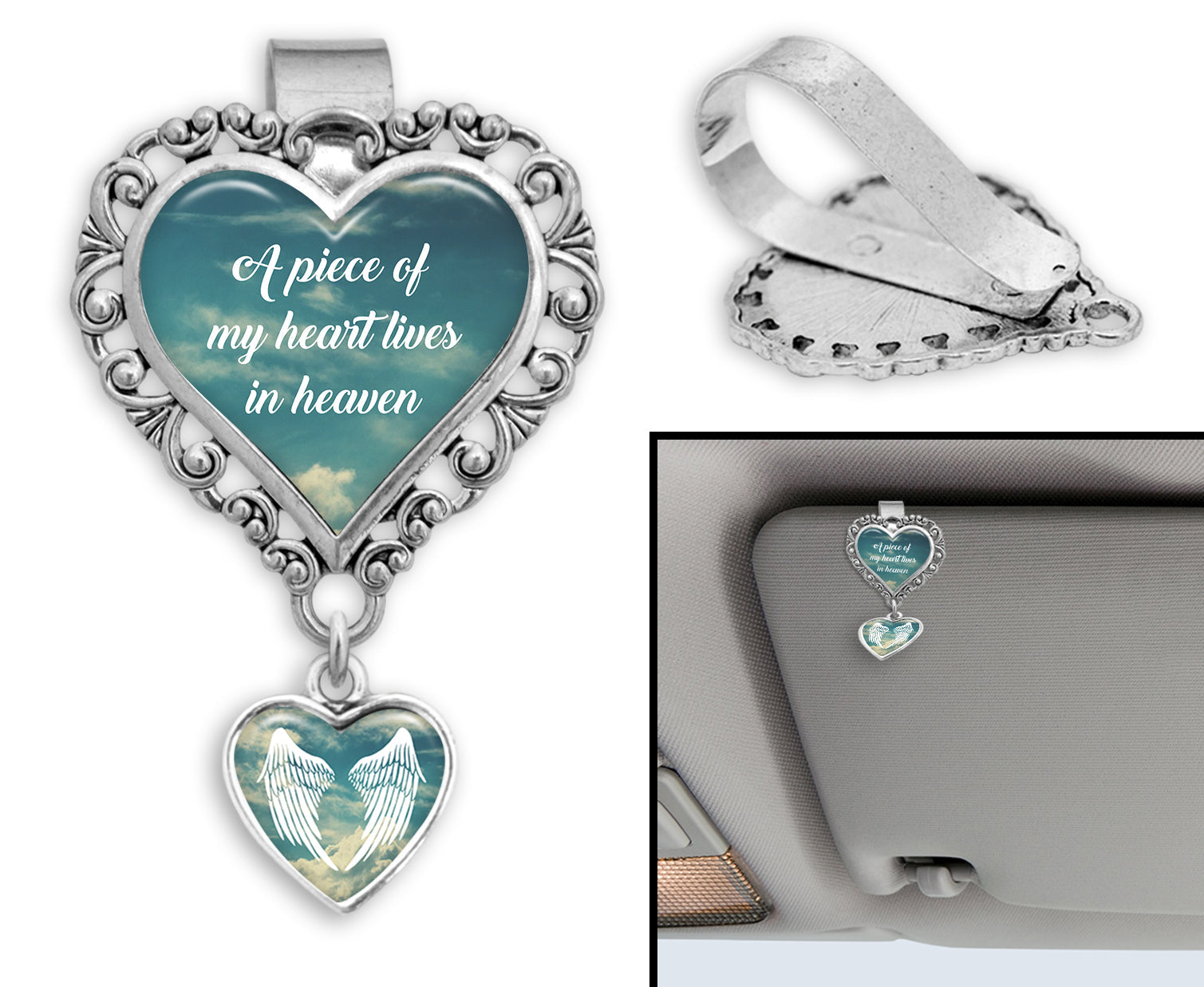 A Piece Of My Heart Lives In Heaven Heart Auto Visor Clip