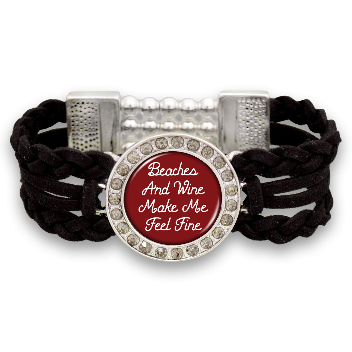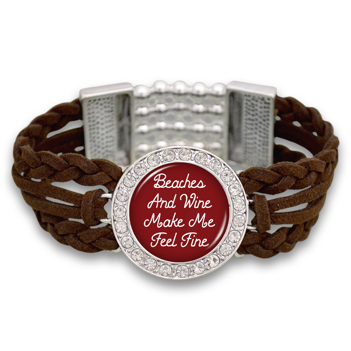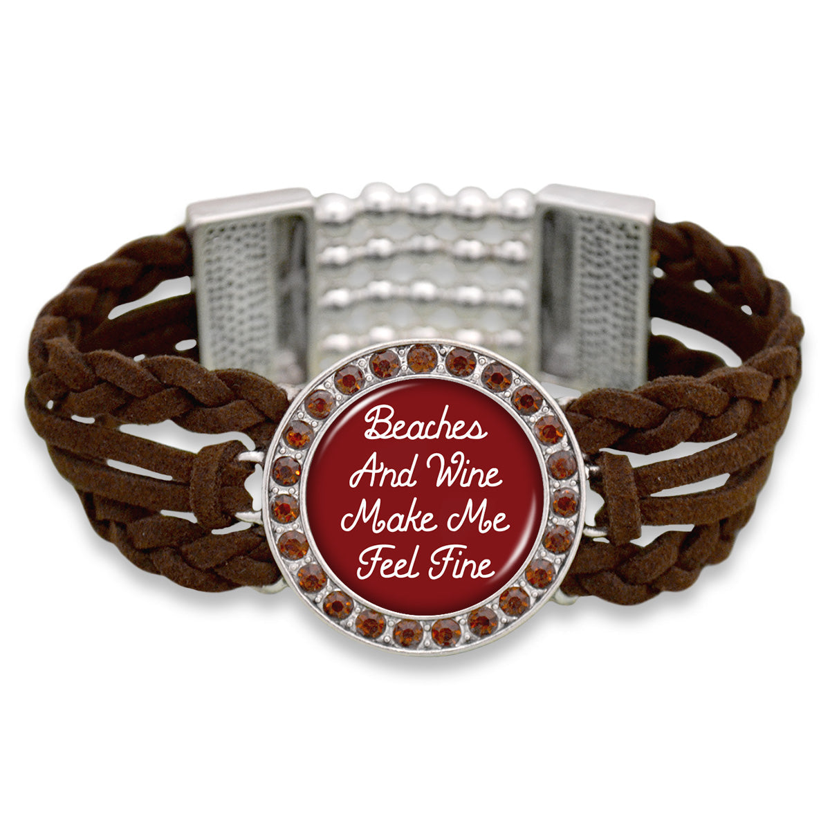 "Beaches and Wine Make Me Feel Fine" Outdoors Suede Stretch Bracelet