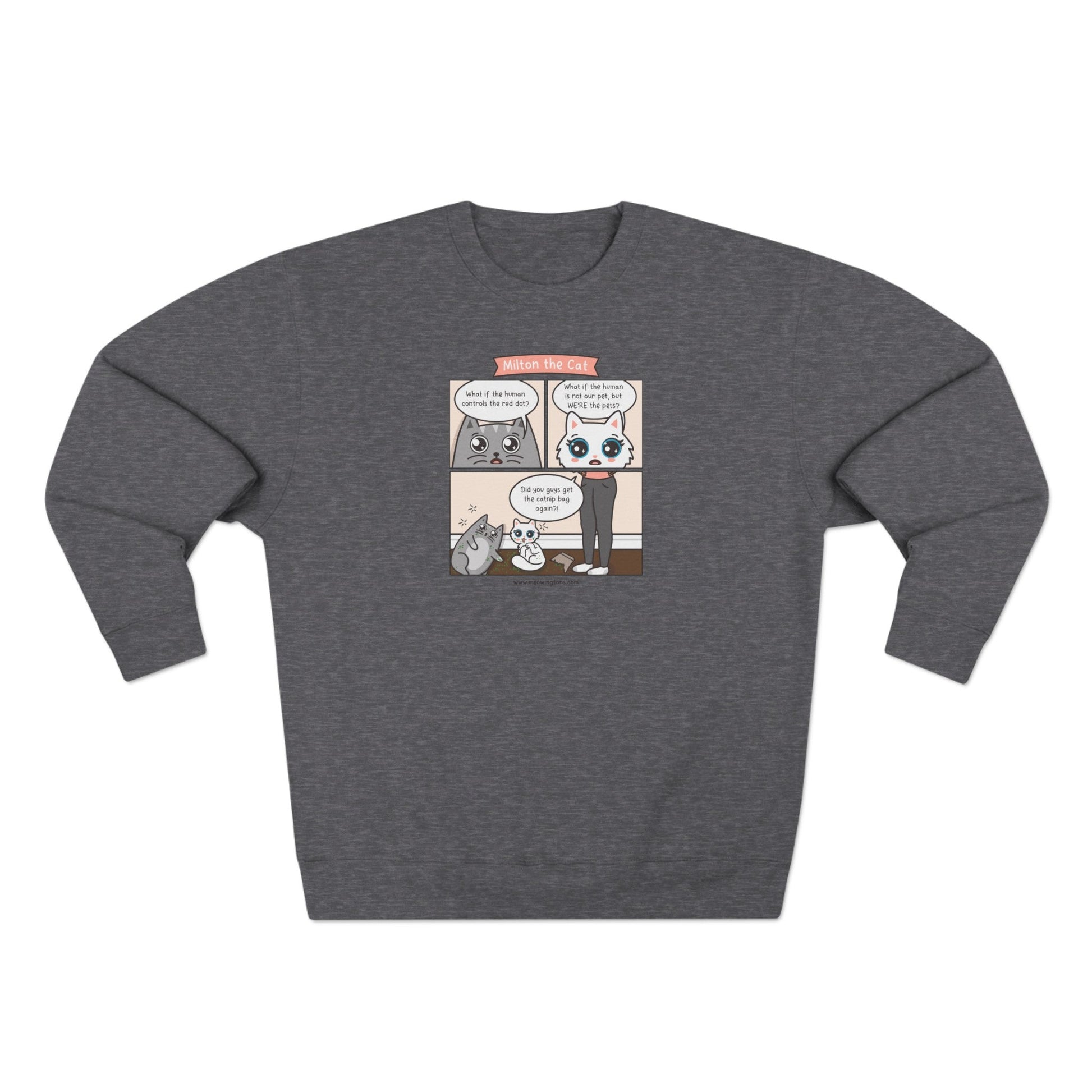 And there's more to love: each cat graphic sweater features a tear-away label, so no more itchy, scratchy tags on the back of your neck. Whether you're on the prowl for a cat-inspired gift or treating yourself, the Catnip Trip Comic Crewneck Sweatshirt is just the right fit. Get ready to purr in style!