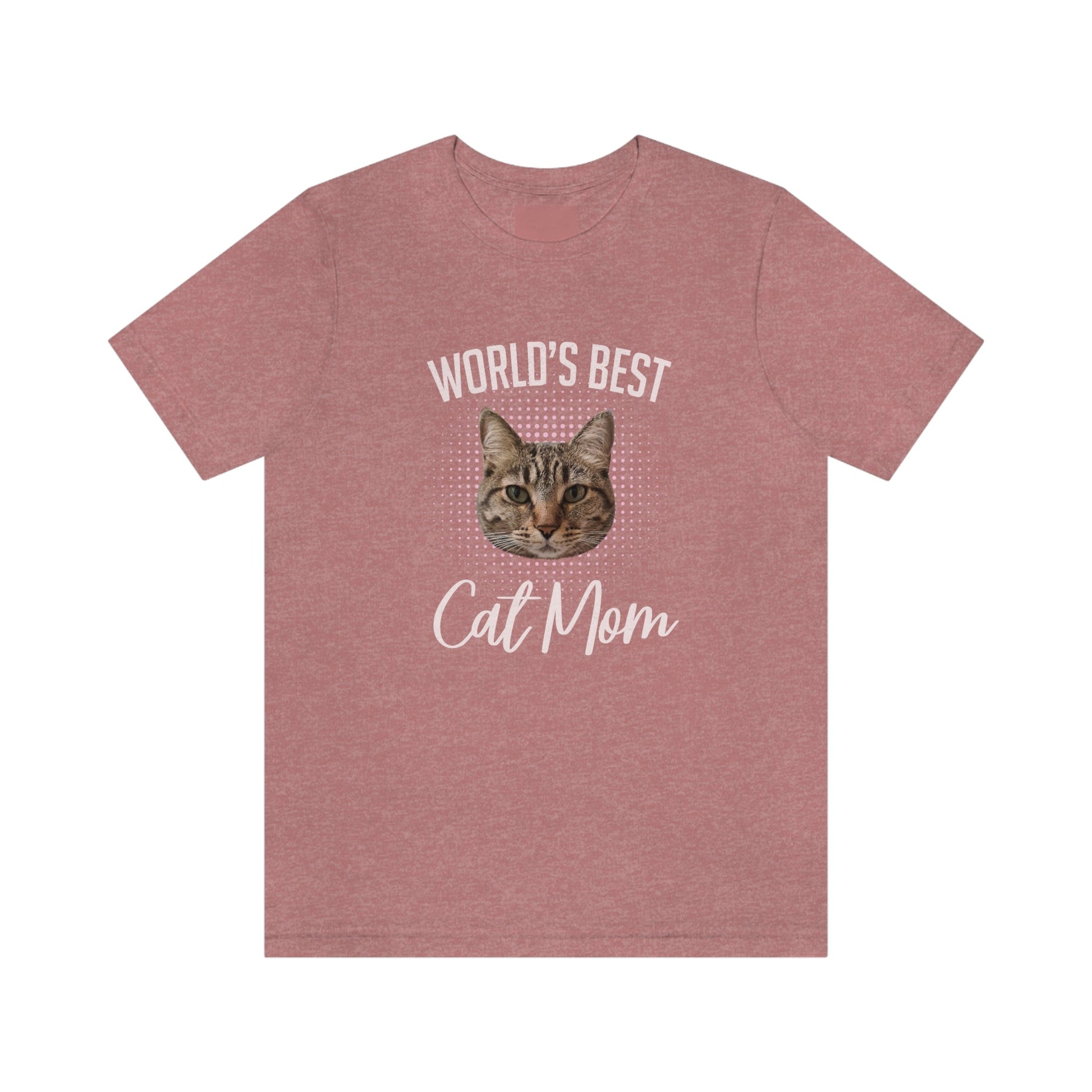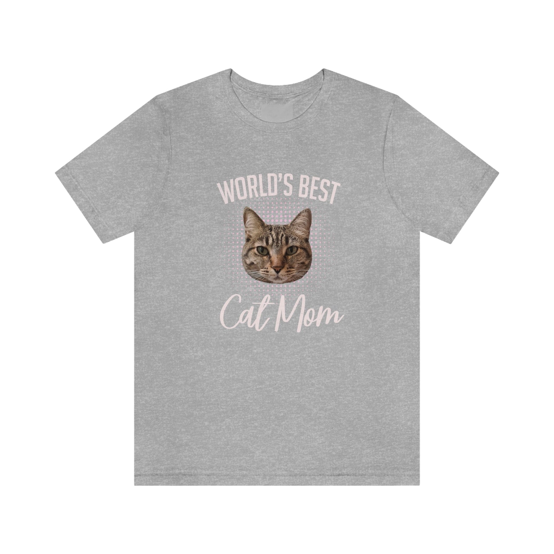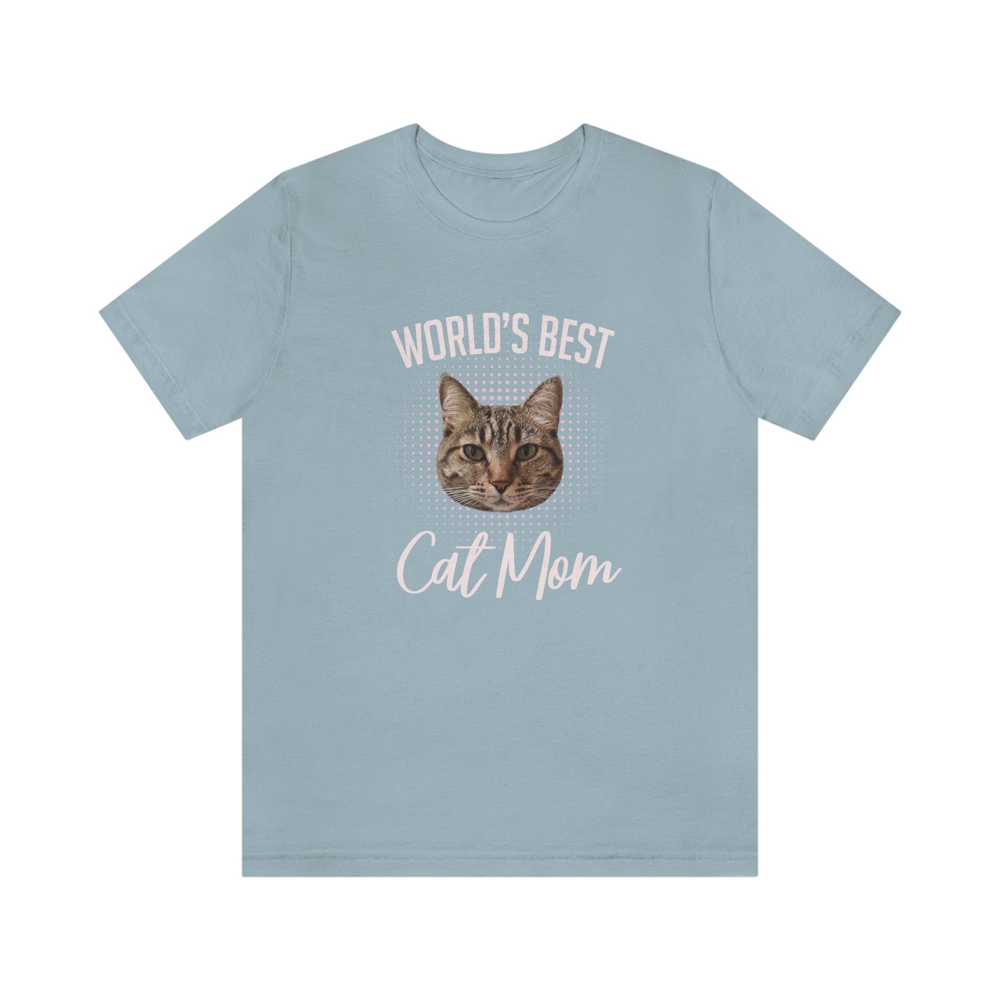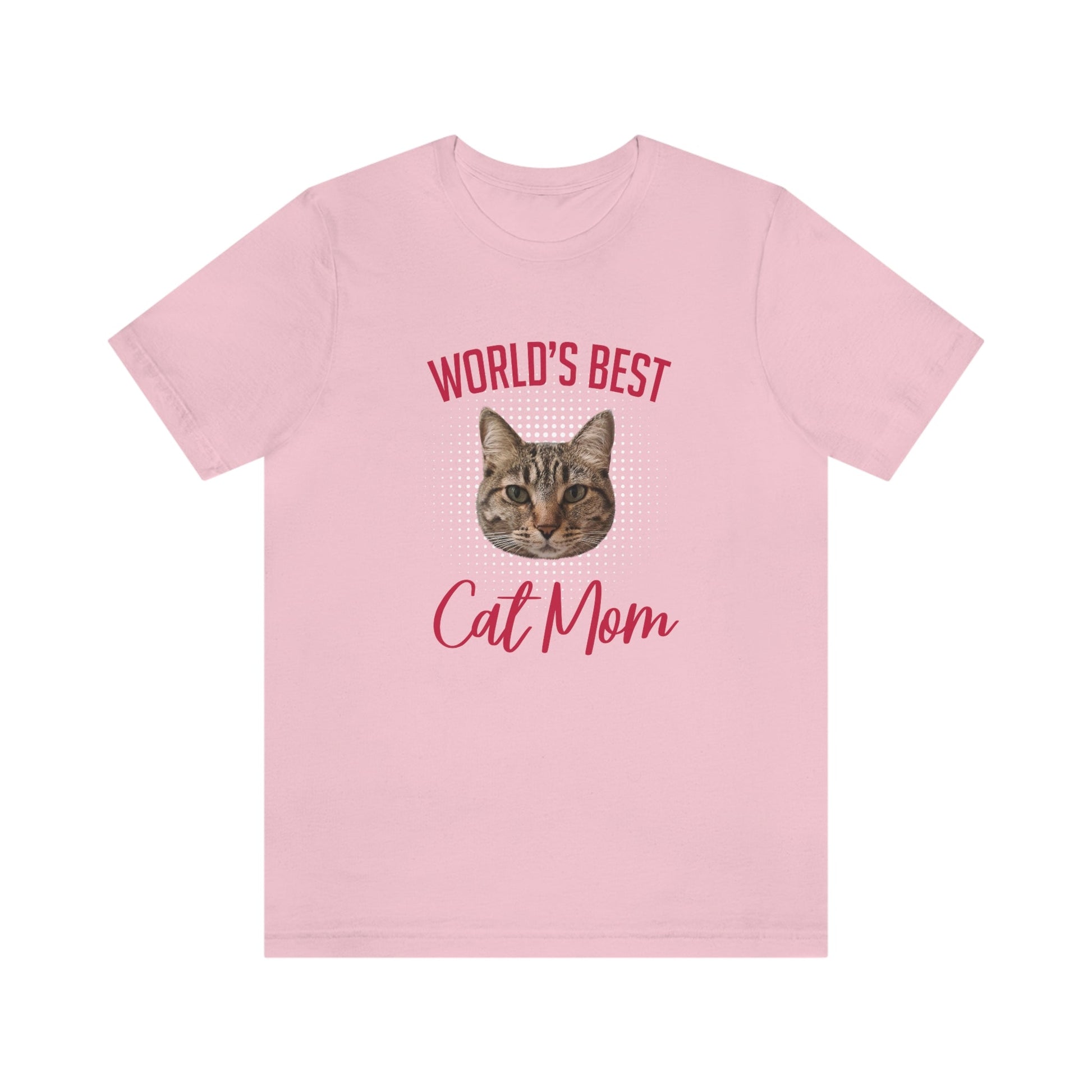 On the prowl for a personalized gift for cat moms? Look no further than the all-new World's Best Cat Mom T-Shirt! Custom printed for each cat mom, your personalized tee will feature a photo of your beloved cat's adorable face surrounded by text that reads 'World's Best Cat Mom'.
