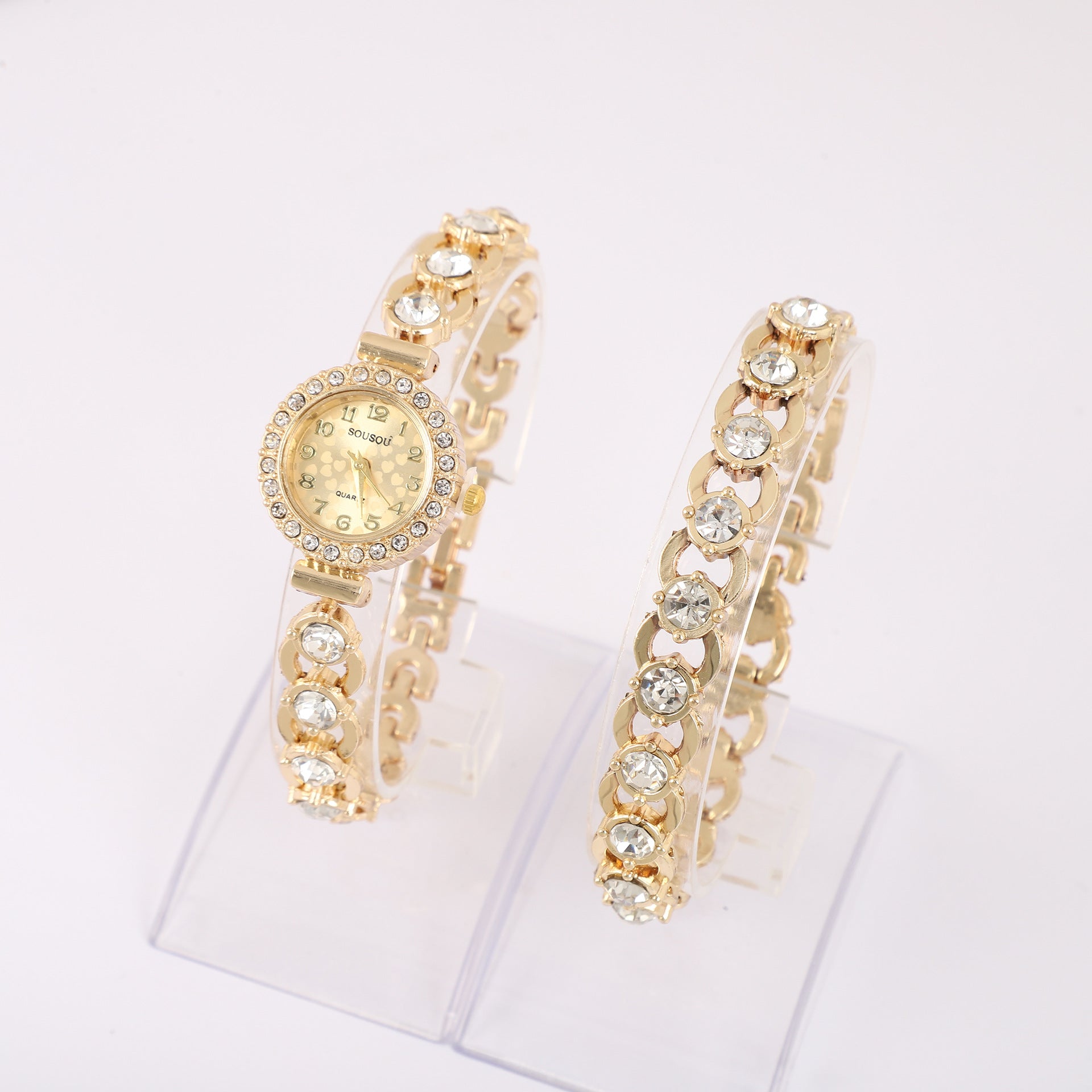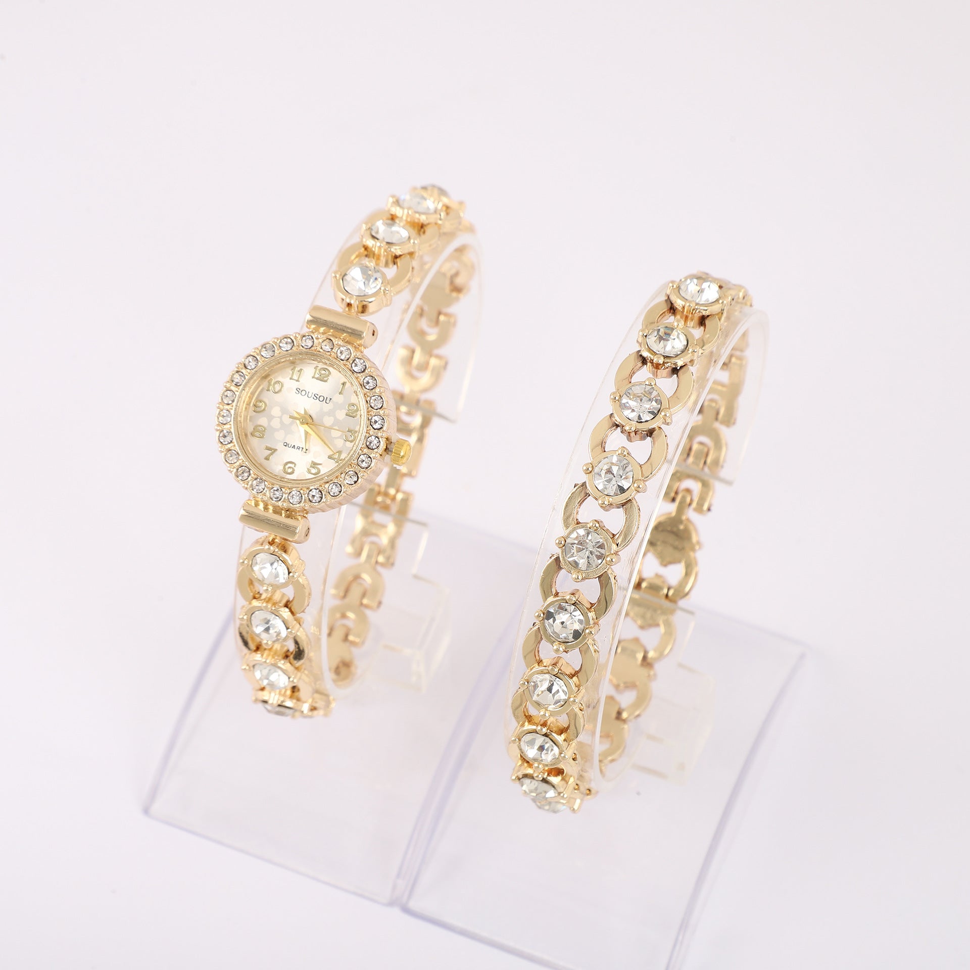 Handpicked from abroad, this internationally inspired jewelry watch set makes a timeless addition to any collection. Whether worn alone or paired with other accessories, it’s an ideal choice for formal occasions, everyday elegance, or as a thoughtful gift. Add a touch of glamour and sophistication to your style with this best-selling bracelet watch, sourced from worldwide suppliers for the finest quality and design.