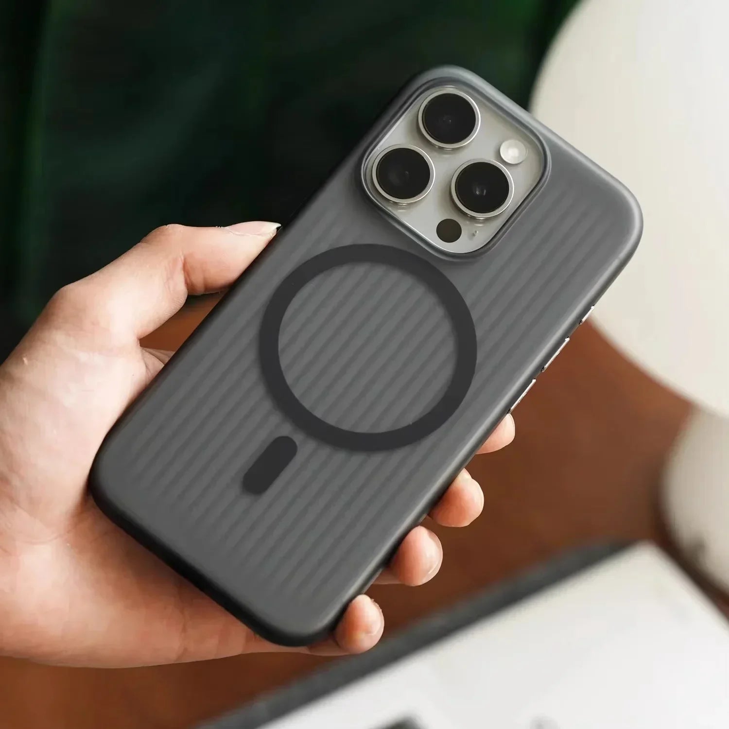Expertly designed with a corrugated matte finish for a comfortable grip, the MagSafe Corrugated Case is the perfect accessory for your iPhone. Its strong magnetic compatibility with MagSafe technology ensures a secure fit, while its sleek design adds a touch of style to your device.