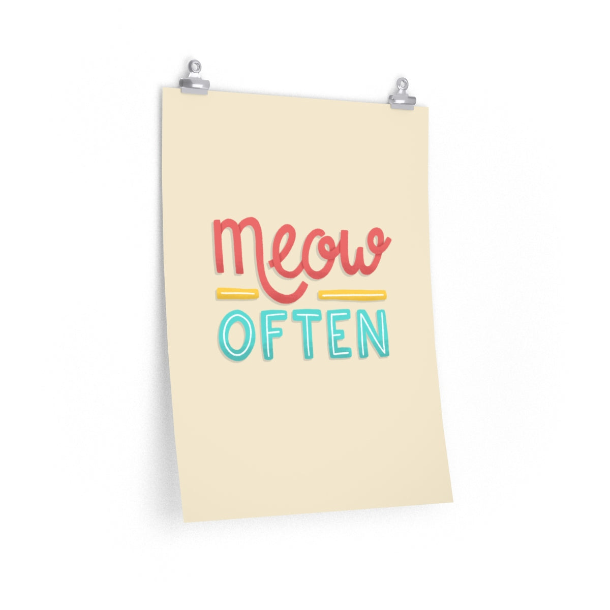 Each adorable cat poster features gallery-quality print on natural white, matte archival paper; meaning your poster can be displayed without worries of fading or yellowing with age. Each poster is printed with pigmented archival inks, guaranteeing a bright and illuminating print that will not fade due to sunlight exposure. Our Meow Often Cat Poster makes a purrfect statement piece for any room!