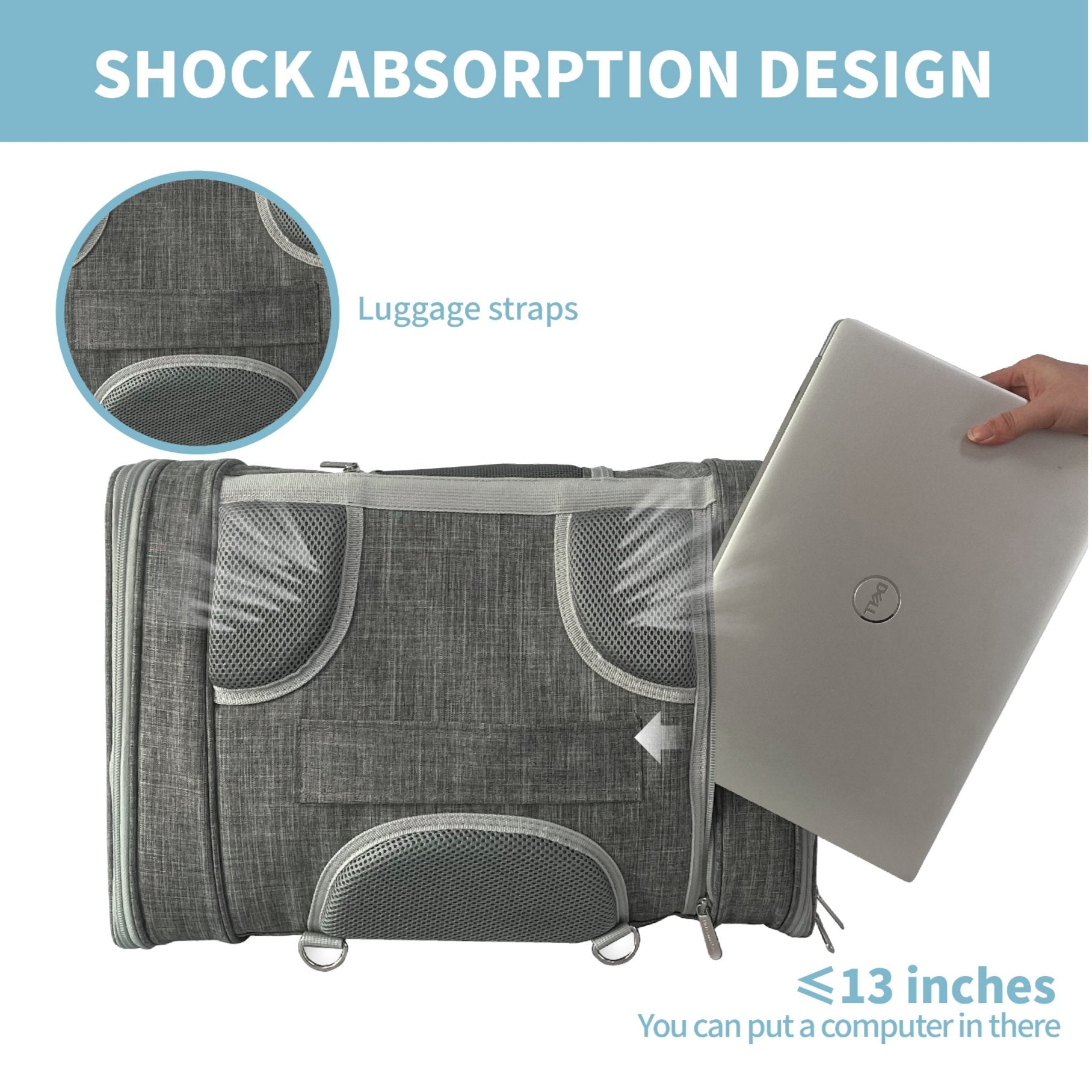 Excellent for in-cabin airline use, designed to lay on its padded side for pet comfort and ease of under seat compatibility