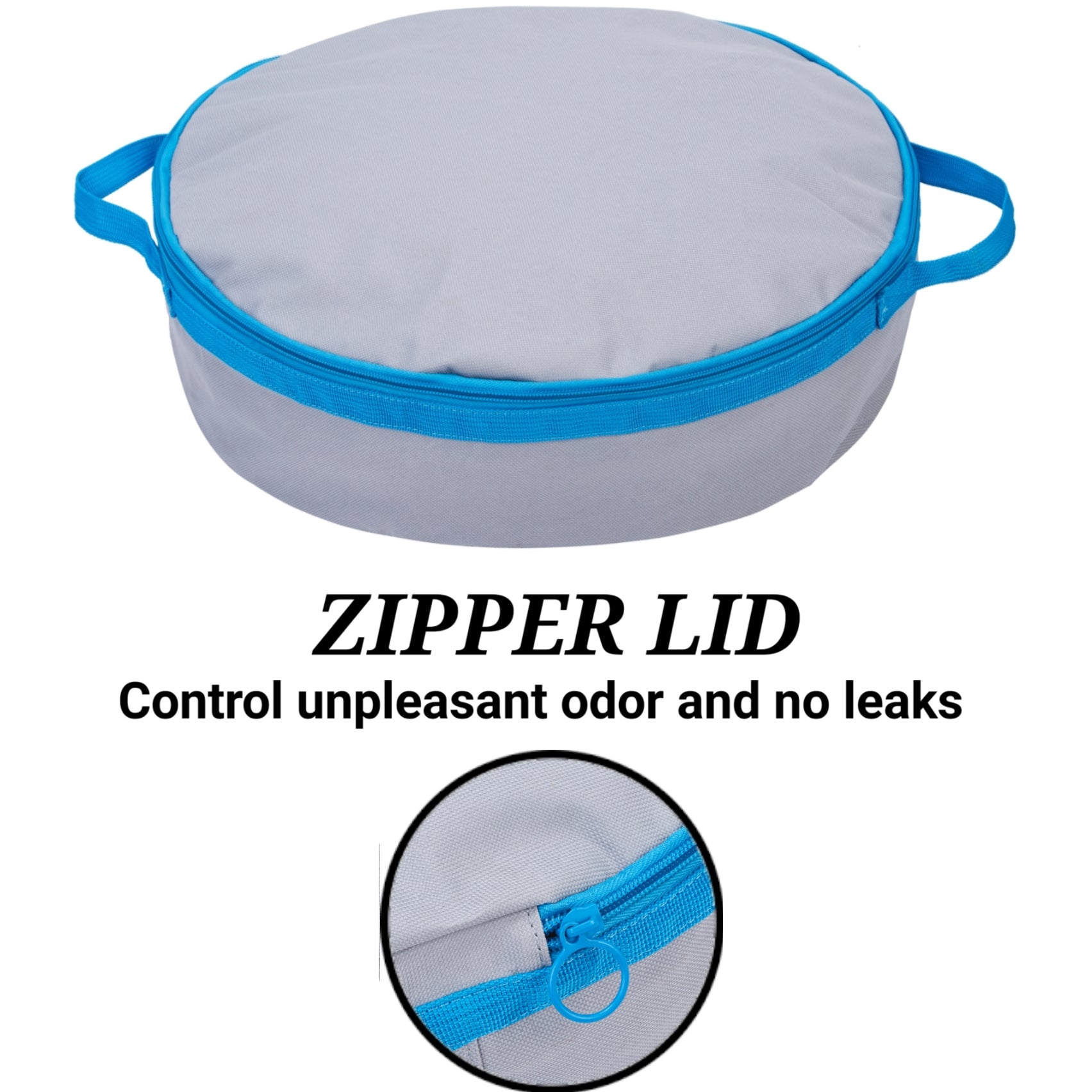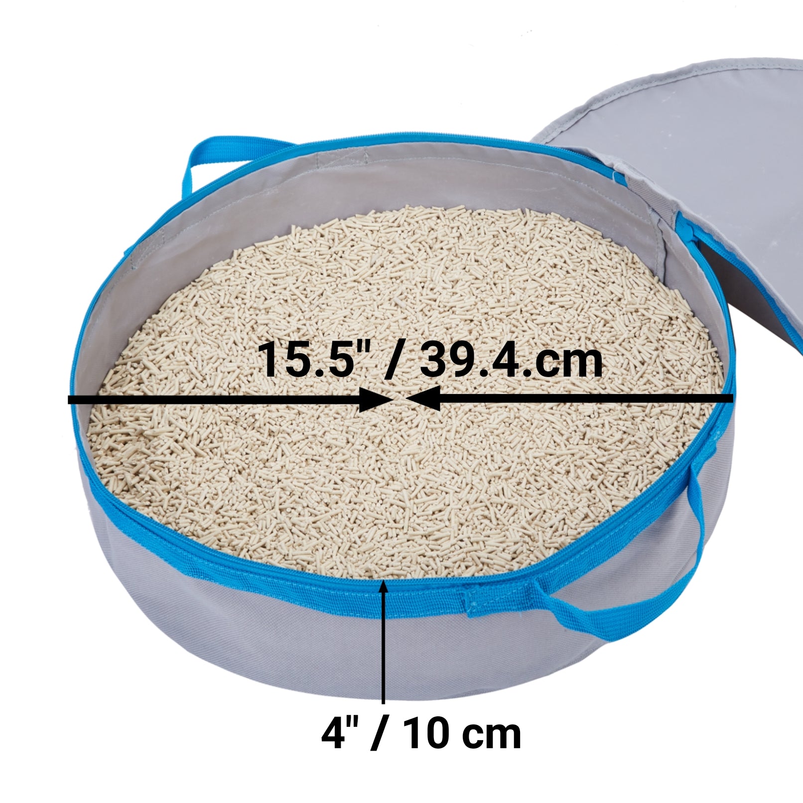 This travel litter box measures 15.5 inches in diameter and approximately 4 inches in height, making it lightweight and easy to carry at just 7 ounces. Its zipper lid helps control unpleasant odors and prevents leaks, ensuring a clean experience. The box is easy to clean – simply shake off the litter, wash with soap and rice, and wipe it down to make it look new again. Its sturdy yet flexible design fits perfectly in a car or on a back seat, and it folds for easy storage when not in use. Additionally, it works seamlessly with cat backpacks, making traveling with your cat more convenient and stress-free. For hassle-free cleanup during trips, use biodegradable bags as liners and dispose of them daily.